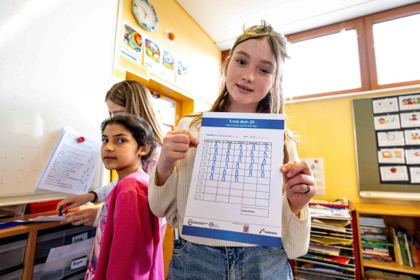 Ein erwachsener Mensch besteht zu über 50 Prozent aus Wasser, bei Kindern liegt der Anteil bei bis zu 80 Prozent. Damit alle Prozesse in unserem Körper gut funktionieren, müssen wir regelmäßig und ausreichend trinken. Mit der im Oktober 2020 eingeführten Aktion „Trink dich fit – denn Durst macht schlapp“ lernen Kinder über eine Stempelaktion an Schulen spielerisch, wie wichtig es ist, genügend zu trinken. Sie studieren so eine Gewohnheit ein, von der sie ein Leben lang profitieren.